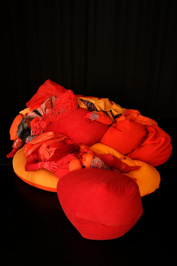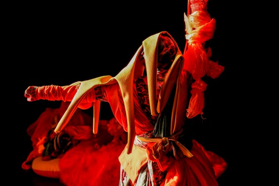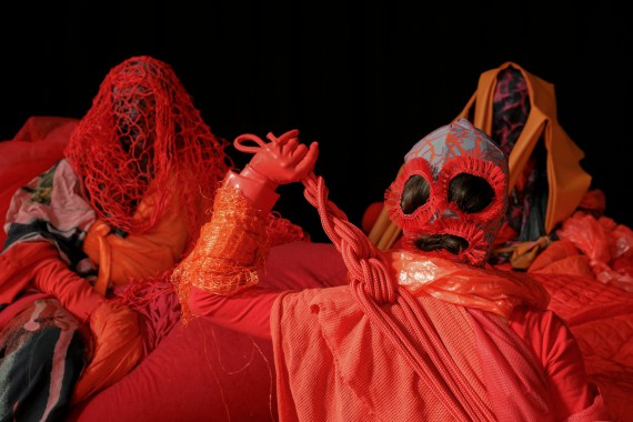 In front of our eyes, three strange creatures move in a bright and colourful landscape. They play, argue, dream and dance. Wearing unbelievable sparkling costumes made of unusual superimposed fabric, with plastic and net, wool and rope, they build nests, hide and take care of the cosy environment that welcomes them. With Tous les yeux s’émerveillent, Lea Moro successfully etches bright colours in our memories, brought to life by the grace of movement. Her tender, ecological dance piece, which magically addresses our capacity to coexist, will undoubtedly delight both young and old.