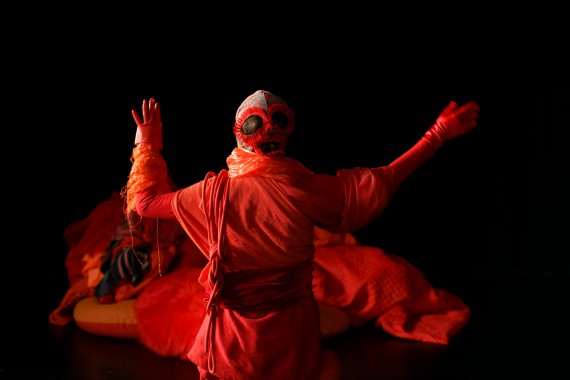 Face à nous, trois étranges créatures évoluent dans un paysage lumineux et coloré : elles jouent, se disputent, rêvent, dansent. Parées d’incroyables et chatoyants costumes faits de matières insolites superposées – le plastique rivalise avec le filet, la laine, avec la corde –, elles construisent des nids, se cachent et prennent soin de cet environnement douillet qui les accueille. Lea Moro réussit, avec Tous les yeux s’émerveillent, à imprimer sur nos rétines des couleurs vives, qu’anime la grâce du mouvement. Une chorégraphie écologique et tendre qui, interrogeant magiquement notre capacité à coexister, ne manquera pas d’enchanter petits et grands.